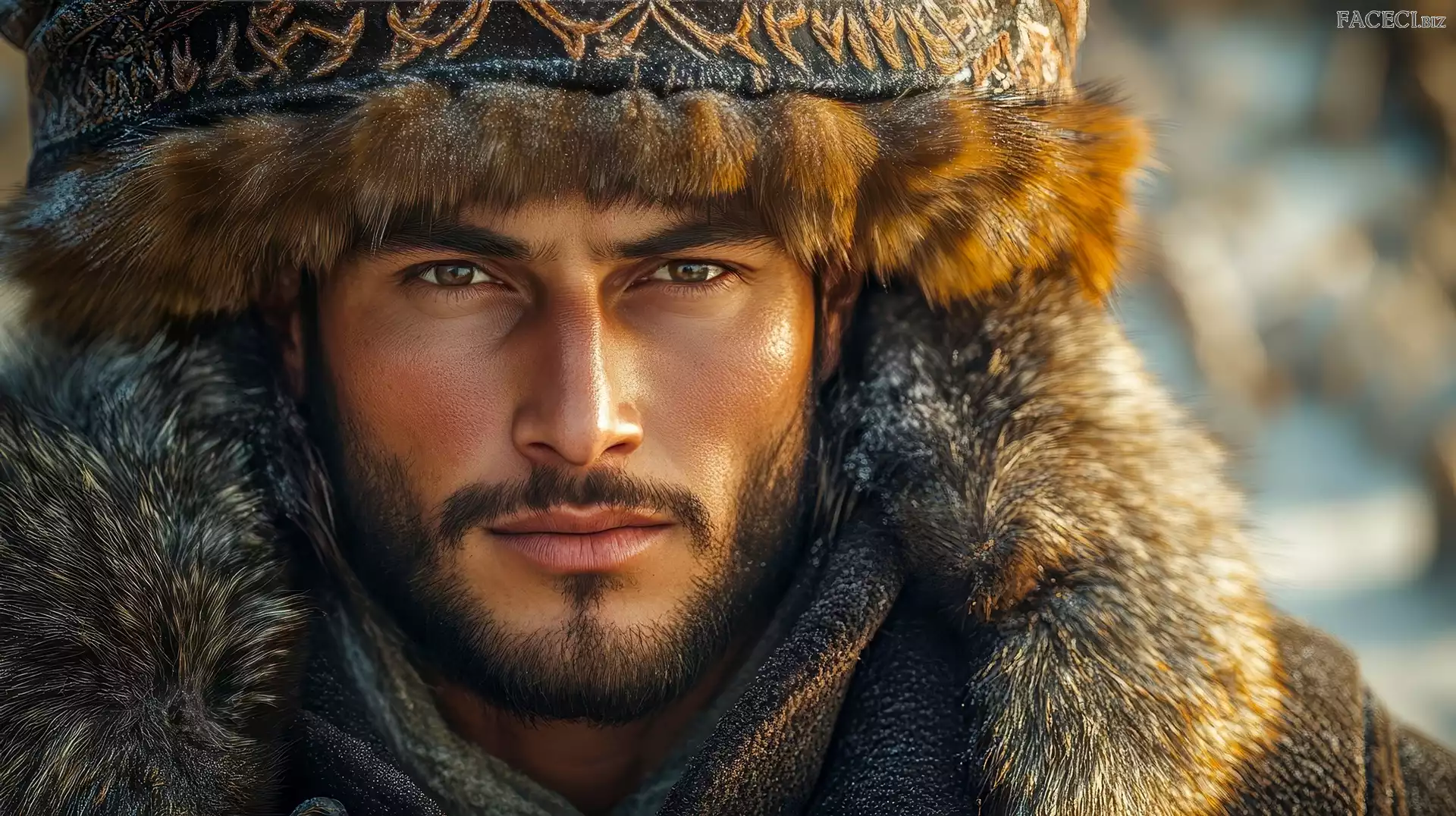Czapka, Futrzana, Grafika, Mężczyzna, Spojrzenie - faceci.biz